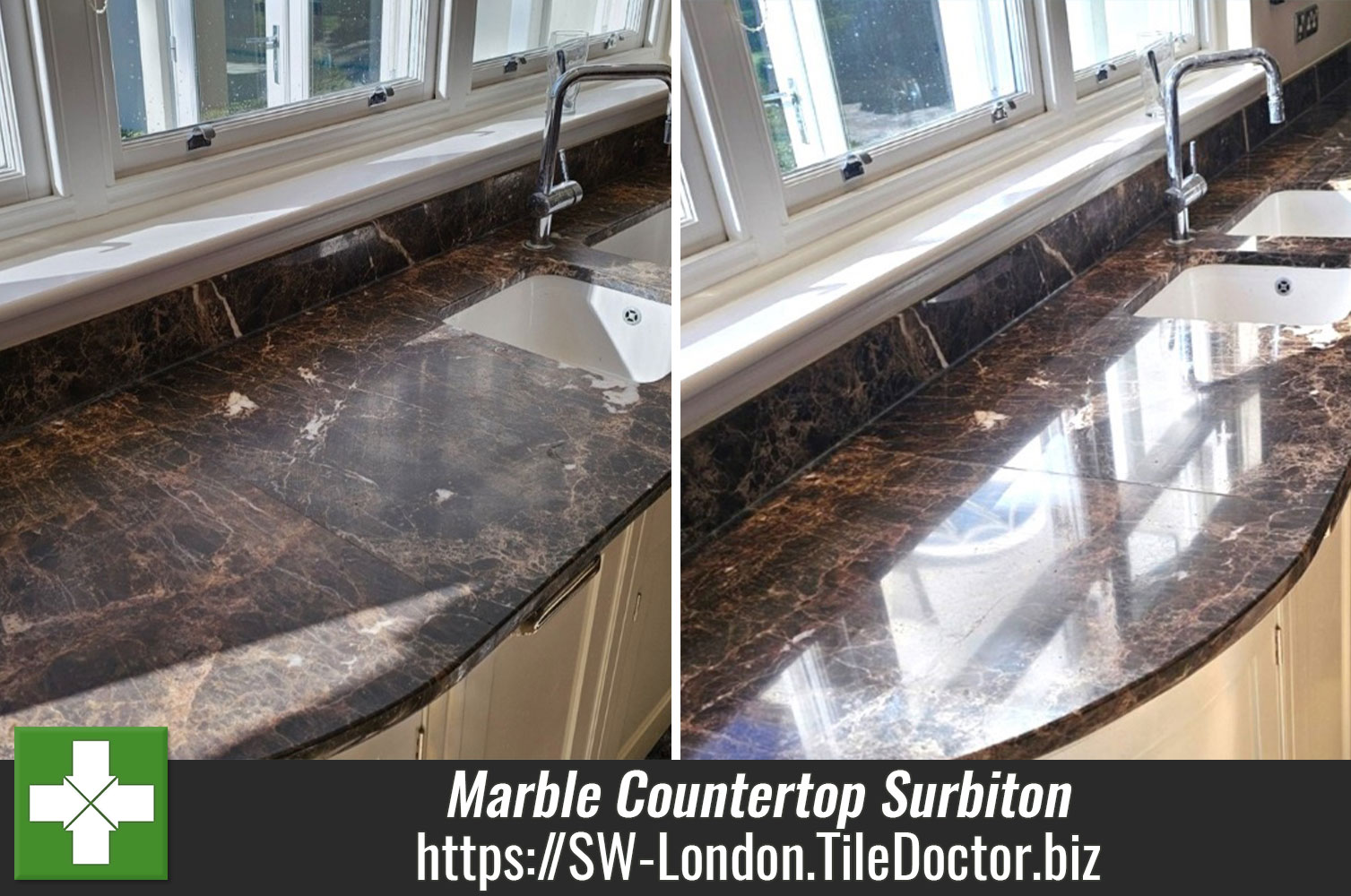 Using Tile Doctors 6-Inch Diamond Pads to Re-Polish a Dull Marble Countertop in Surbiton